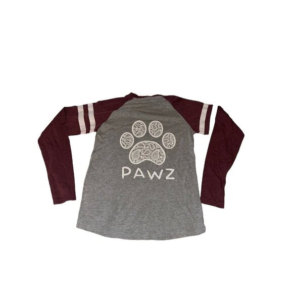 Pawz Shirt Women's Small White Paw Print Long Sleeve Stripe Animal Raglan
