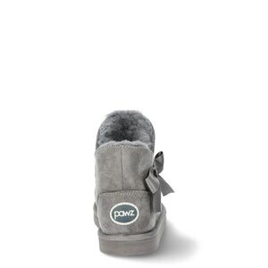 Pawz Girls Faustina Suede shearling Bow Boots charcoal Stylish gray suede ankle boots featuring a decorative bow. Perfect for a cozy look.