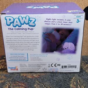 Pawz can become a beloved, calming companion as the auto-adjusting light guides children though deep breathing patterns. Children watch and follow the lighted prompts—inhaling when the light gets brighter and exhaling as the light fades. This engaging breath activity encourages children to be fully present and bring awareness to their thoughts and feelings. Includes a night-light with timer that can be set for 5, 15, or 30 minutes..