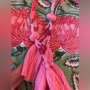 Francis Floral by Pax Philomena!! Gorgeous luxurious drawstring all cotton wide leg pants. Have pockets!! Wear as dressy or lounge. Gorgeous exotic pink and green floral print. The ties of drawstring have gorgeous beading. Wide leg. High waist. Perfect condition. Rare high end brand. New with tags no flaws. Still on website!!! Part of proceeds when I bought went to Mother Teresa’s charity. Truly a brand with beauty, luxury and heart.
