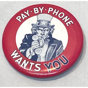 Pay by Phone Wants You Uncle Sam PIN PINBACK BUTTON Vintage 2.25"