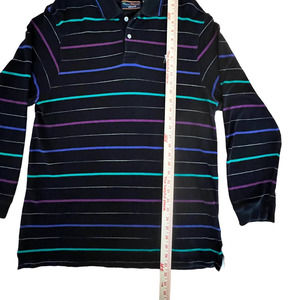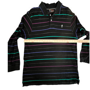 Payne Stewart Legacy Black & Multicolor Stripes Long Sleeve Polo Golf Shirt L