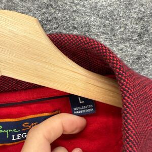 Payne Stewart Polo Shirt Men L Large Red Plaid Button Up Collared Long Sleeve