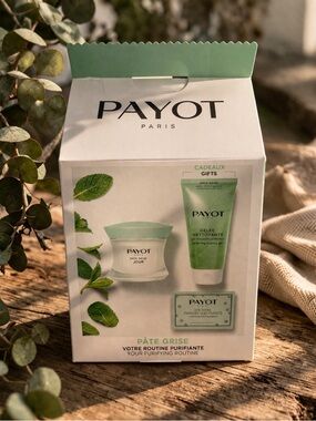 Payot Paris purifying routine bundle kit! You will receive one box with multiple items in it. Please review the last few pictures, the box is slightly damaged from transit but the products are completely not impacted!