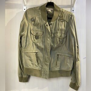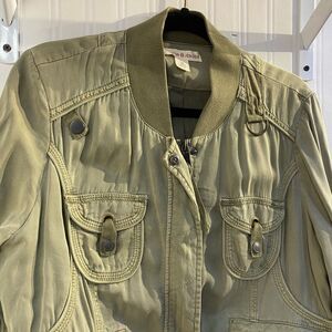 The Payton Jensen military-style jacket is a chic and structured piece that blends utility with modern sophistication. Designed with a tailored fit, this jacket typically features classic military-inspired details such as epaulets, multiple pockets, and a stand-up collar.