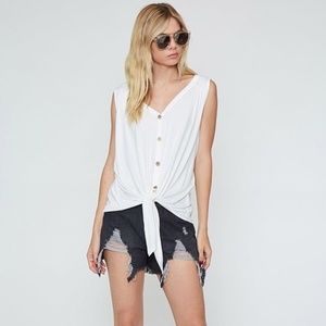 Payton White Button Up Tie Front Tank