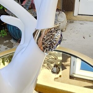Paz Creations Blue Gold Glass Sterling Silver Ring Size 7