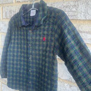Paz Rodriguez Long Sleeve Button Up Blue/Green Plaid Shirt Boys Size 36 Months.