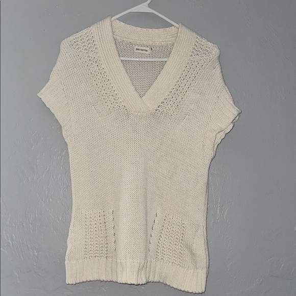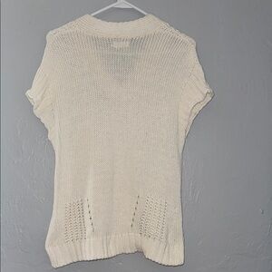 This stylish V-neck sweater from Zara features a textured knit design in a soft cream color. Its relaxed fit and medium-weight material make it perfect for layering, while the ribbed edges add a touch of sophistication.