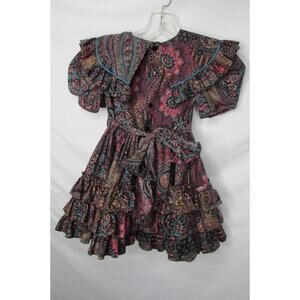 Pazazz Paisley Pageant Dress Girls Size 5 Full Circle Tiered Ruffles USA Made