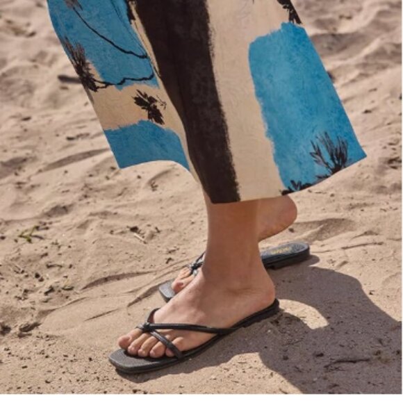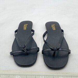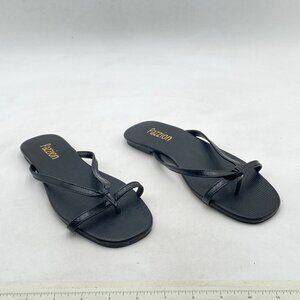 Pazzion Black Square Open Toe Flats Sandals Slip On Backless Flip Flops Shoes