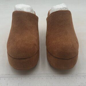 Pazzion Brown Comfy Platform Round Toe Mules Clogs Slip On Chunky High Heel Shoe