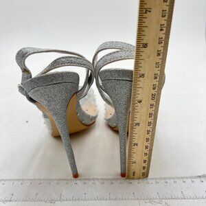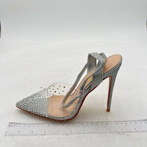 Pazzion Silver Rhinestones Pointy Toe High Heel Pumps Strap Buckles Stilettos Clear Sandals Sexy Wedding Dating Shoes