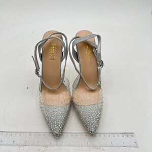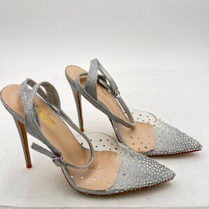 Pazzion Silver Rhinestones Pointy Toe High Heel Pumps Strap Buckles Sexy Sandals