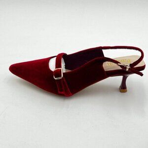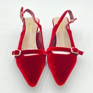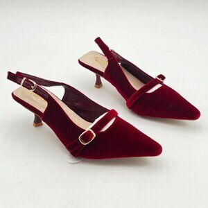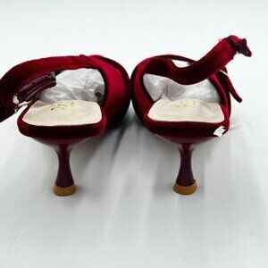 Pazzion Wine Closed Toe Slingback Pumps Mid Heel Ankle Strap Buckled Sandals