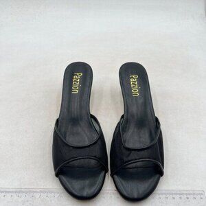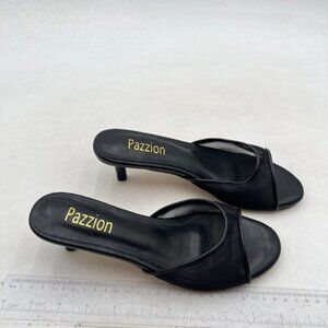Pazzion Women's Open Toe Mid Low Heel Mules Slip On Kitten Heel Mesh Sandals