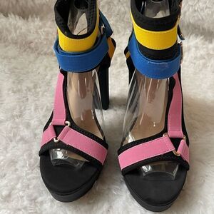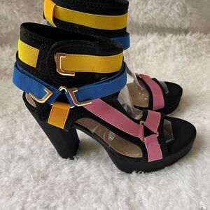 Pazzle Keandra multi color platform chunky heels Velcro straps sandals S…
