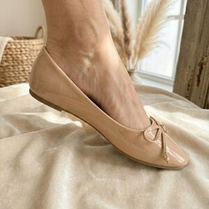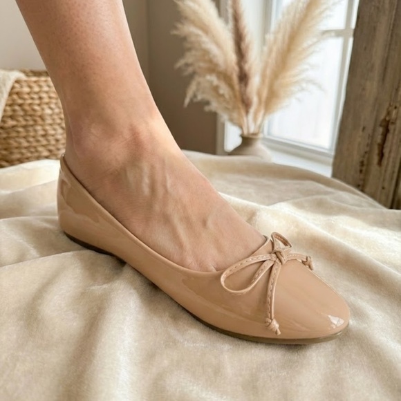 Pazzle Nude Patent Ballet Flats with Bow Slip On