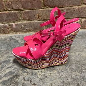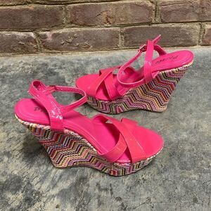 Pazzle Pink Multi Wedge Sandal Size 8 NWOT