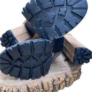 Pazzle Footwear l Silver-Studded, Suede Tan Combat Boots Size 6 l NWOT