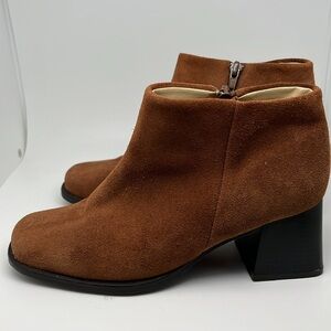 Pazzo Suede Leather Brown Nutmeg Block Heel Boots Booties Size 8M