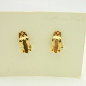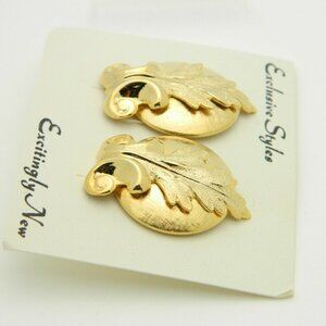 Pcraft Matte Textured Repousse Leaf Flower Accented Gold Tone Clip Earrings