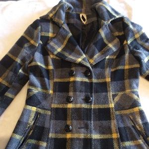 Nice pea coat yellow-grey . Warm ! Excellent condition but missing 1blk button on the front.