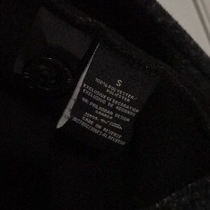 Warm, stretchy pea coat, double breasted, no shoulder buttons for gloves but they are on the sleeves, waist tie around with two front pockets. Thicker/warm material