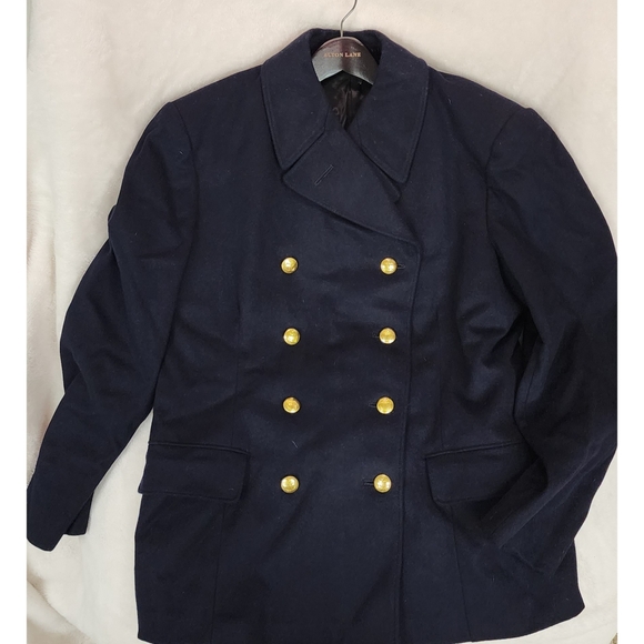 Item is a vintage navy blue pea coat. Brand unknown.