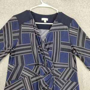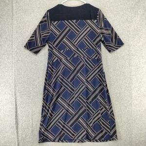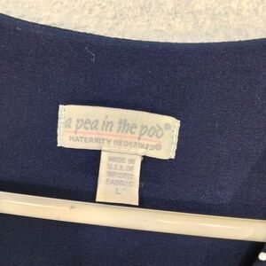 Pea in thePod Maternity Dress Wmns Sz L Navy Blue White Weave Pattern 3/4 Sleeve