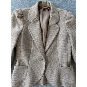 Peabody House Jacket Blazer Womens 8 Brown Wool Tweed Puff Sleeve Vtg 80's Lined