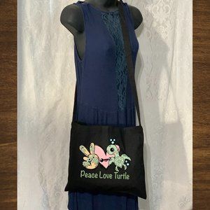 Peace Love Turtle Cotton Canvas Crossbody Messenger Tote Bag with Long Strap