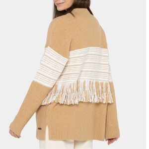 Peace Love World Black Label Fringe Cozy Knit Tan Cardigan Medium Bohemian
