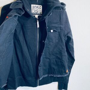 Peace Love World Denim Jacket French Terry Hoodie