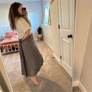 I adore this super pretty designer Peace Love World gray asymmetric super soft and comfy elastic waist maxi skirt