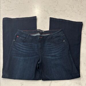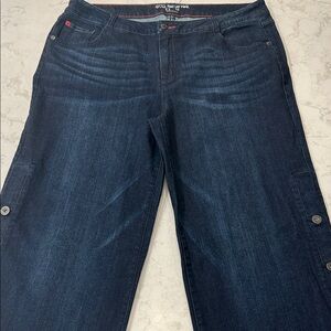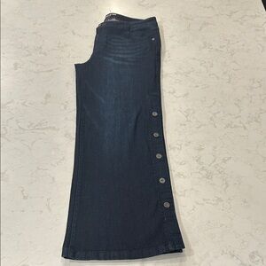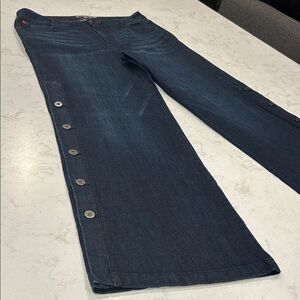 Peace Love World Regular Wide Leg Jeans with Side Buttons Womens Dark Blue Jeans