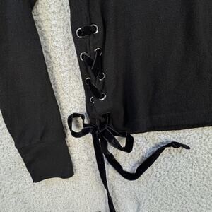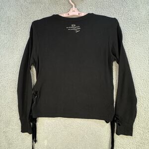 Peace Love World Womens Black Crazy in Love Crop Sweatshirt Side Tie Bows