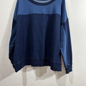 Peace Love World Women's Blue Color Block Pullover Sweatshirt Top Sz 2XL