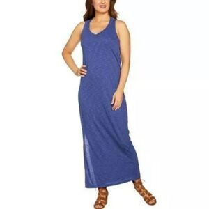 Your go-anywhere dress. From outdoor concerts to the beach, this maxi dress keeps you comfortable and covered. Side slit details make strides simpler. Fabrication: slub knit. Features: maxi style, sleeveless, V-neck, draped back, side slit details, double lining