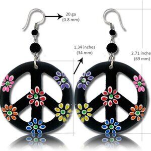 - The dangling handmade wooden peace signs are 1.37 inches in diameter. The metal component is made of 316L surgical steel.