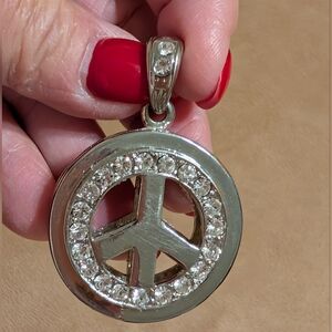 Peace sign pendant with rhinestones accents. large & weighted- very pretty - great sparkle