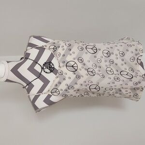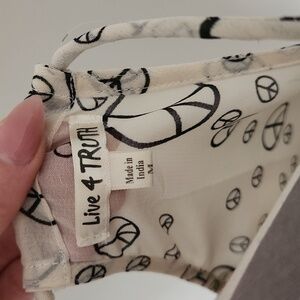 Stylish racerback sheer tank top with peace sign pattern. Pair it with a bandeau!
