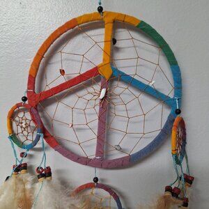 Peace Sign Rainbow Dreamcatcher Feathers Beads Handmade Boho Native Traditions