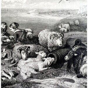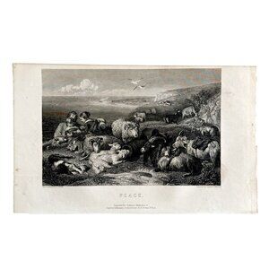 Peace Sir Edwin Landseer Steel Engraving 1859 Victorian Seaside Farm Art DWY5C