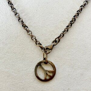 Peace Symbol Charm Bracelet Antique Silver Tone Metal Link Chain Vintage 7.5"