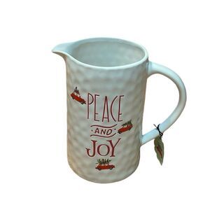 Peace and Joy Milk Pitcher, Water, Farmhouse Christmas, Harvest Green Pottery