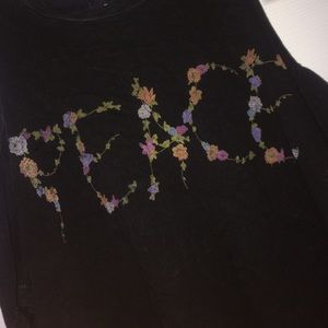 Cute black crop top with the word peace in little Flowers also has open holes on the shoulders