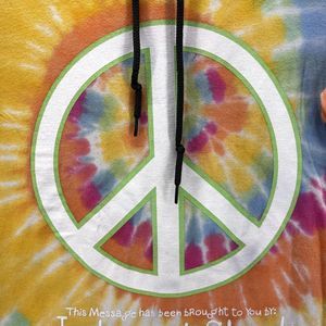 Peace love carbs Hoodie Womens Small Tie Dye yellow pink long sleeve Sweatshirt