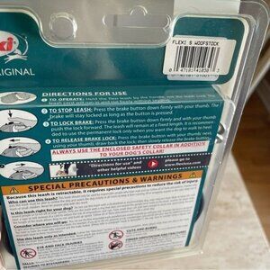 Retractable leash from German company Flexi. Features the patented Flexi breaking system and ergonomic handle. Designed to retract and extend smoothly. Length of leash is 16 feet.