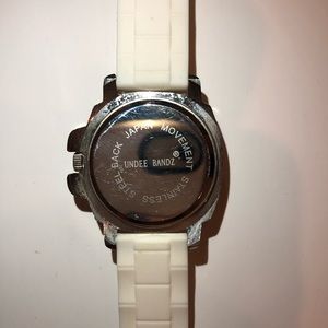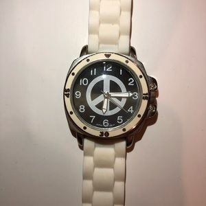 White peace sign Rubber material band Watch Brand: butter super soft Used. Needs new battery.
